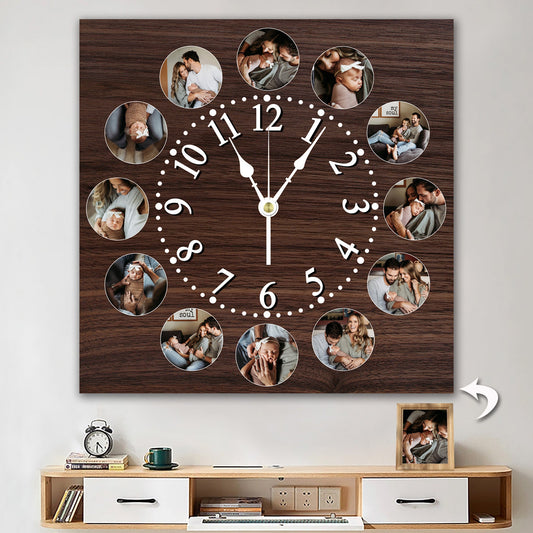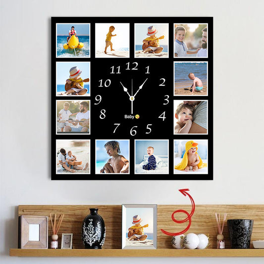 12pcs Photo and Text Square Wall Clock Personalized Clock
