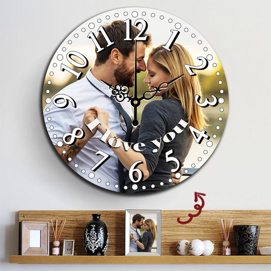 Custom Wall Clock Round Clock Elegant Style With Photo and Text