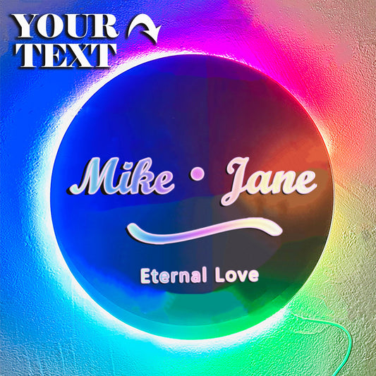 Custom LED Name Round Mirror Light - Personalized Name Wall Decor