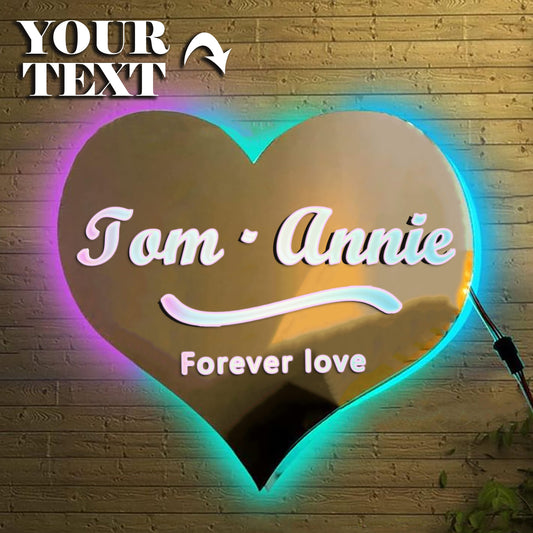 Custom LED Name Mirror – 12-Color Remote Control, Personalized Bedroom Decor