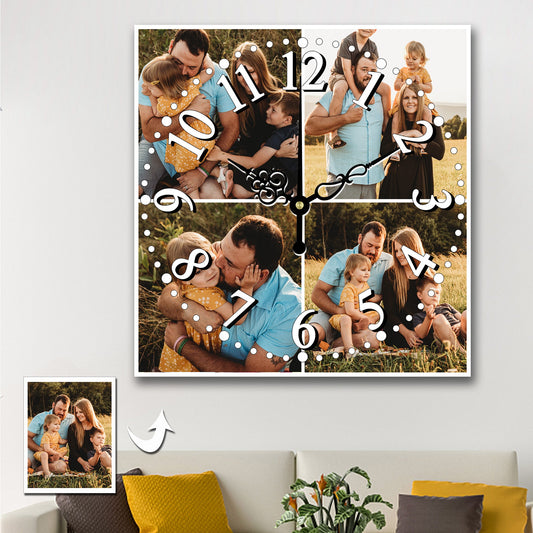 Personalized Photo Square Custom Wall Clock With 4 Photos
