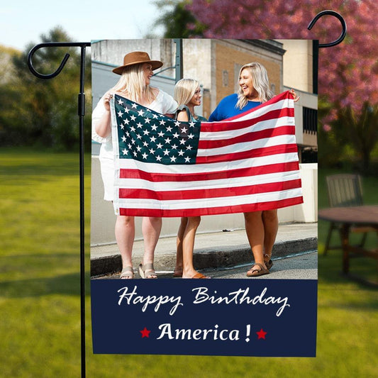 Custom Photo Personalized Outdoor Garden Flag Double Sided Printing Happy Birthday America