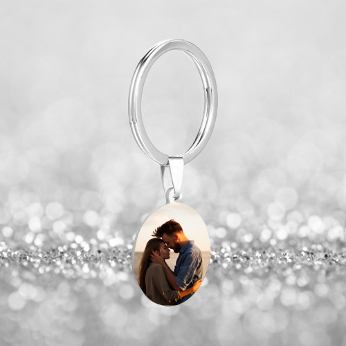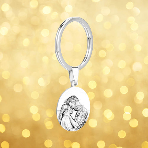 Round Tag Photo Key Chain With Engraving Stainless Steel