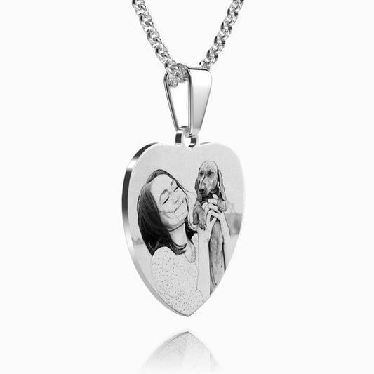 Women's Heart Photo Engraved Tag Necklace With Engraving Stainless Steel