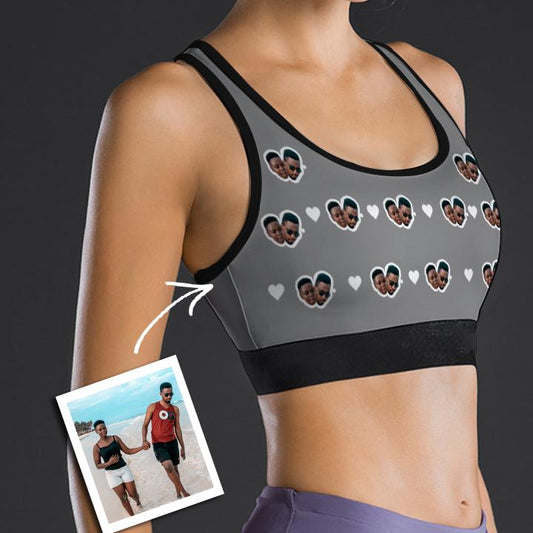 Photo Custom Face Sports Bra With Heart Couples for Women